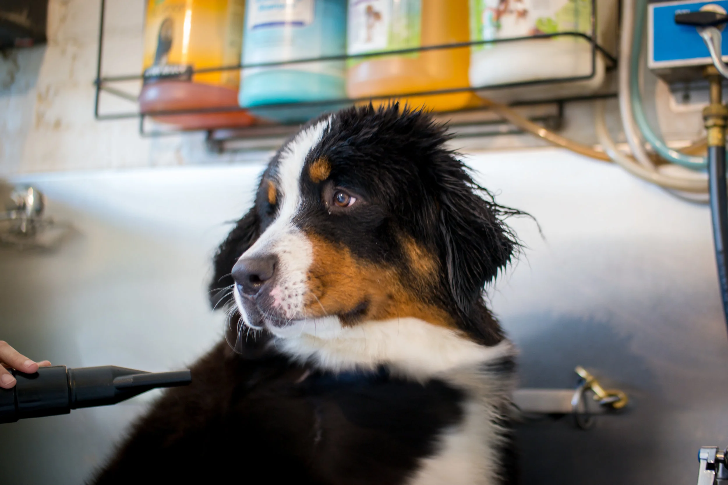 Our "Groomer's Bath" is what we like to describe as "the works." It includes everything but the kitchen sink, or in this case, everything but a haircut. Included, a shampoo with massage, luxurious conditioner (with add on options like deep conditioning masks or color specific shampoos), blow dry + brush out (de-matting fees may apply where necessary), nail Clip + file, ear cleaning (and flushing when needed), ear hair grooming (when needed), furminator de-shedding brush out (when needed), sanitary shave, and a dental inspection (extremely important in maintaining the overall health of your pet.)